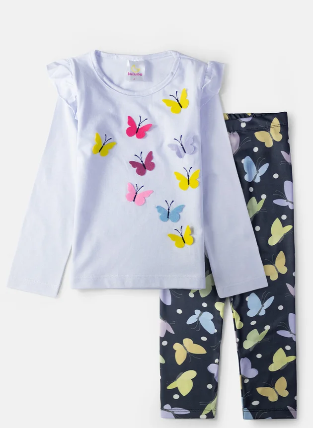 Kit de 2 Conjuntos de Meia Estação para Meninas. São 4 peças versáteis e confortáveis, perfeito para as pequenas que adoram estampas delicadas e cheias de personalidade.